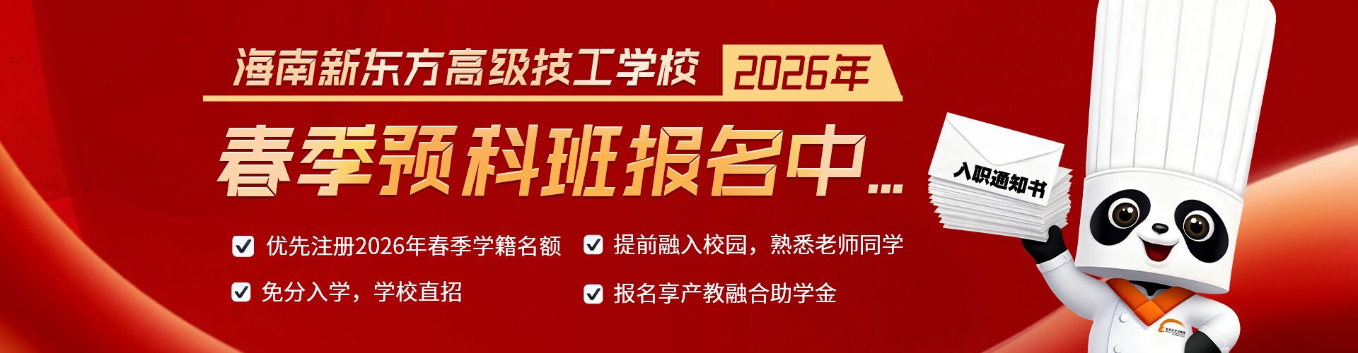 海南新东方烹饪高级技工学校坐落于国际旅游岛——海南,隶属于新华教育集团,是经人力资源和社会保障部门批准成立的烹饪、西点技能培训学校,是培养烹调师、烹饪管理人才的国际餐饮教育基地(IFBA——EPNT)。